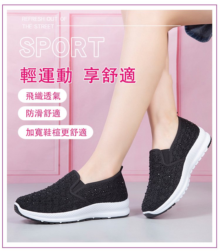 飛織輕量網紗燙鑽鞋