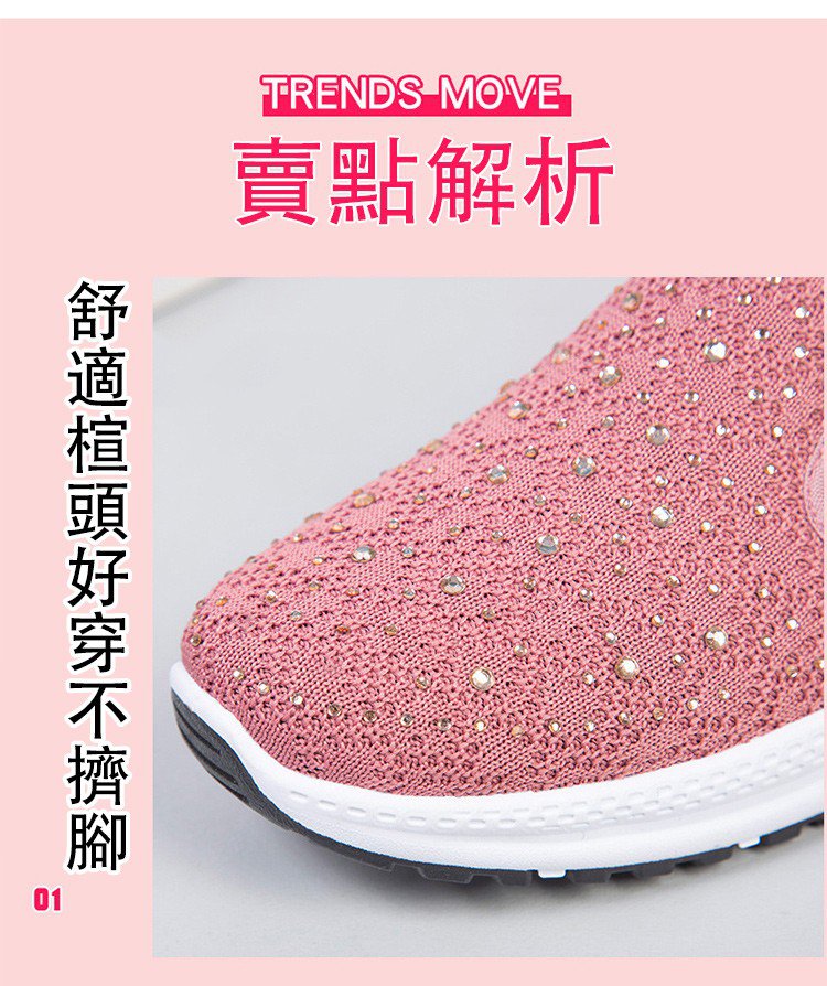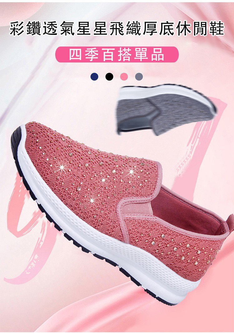 飛織輕量網紗燙鑽鞋